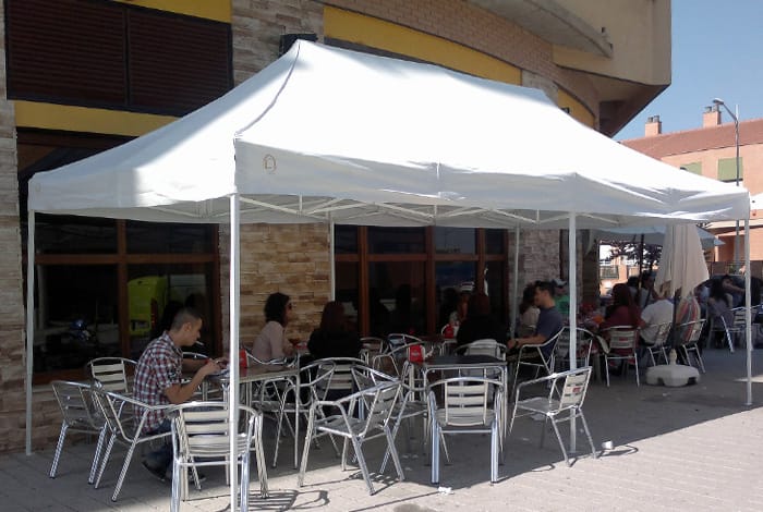 Perfil de los pies HEXAGONAL de 40 mm con 1,5 mm de espesor. Costillas interiores del pantógrafo de 13 x 25 mm. Piezas de unión de nylon de alta densidad DuraLife®. Cubierta confeccionada con lona de poliéster ExtraTex® Expert de 300 gr/m² 100% impermeable y recubierta de PVC a una cara.